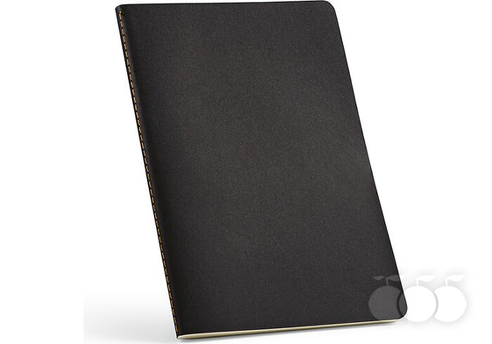 A5 užrašų knygelė. Pagaminta su perdirbto kartono viršeliu ir 80 lapų linijomis 70gsm dramblio kaulo spalvos popieriaus, datos ir puslapio numerio įrašymo laukeliu.